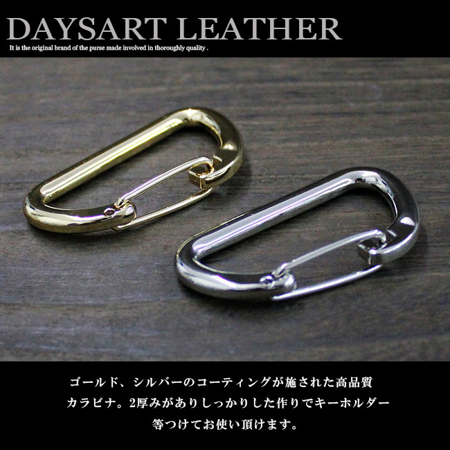 シンプルでオーソドックスなカラビナです。スチール系の合金製で丈夫な作りになっており、鏡面仕上げで美しい見た目となっています。