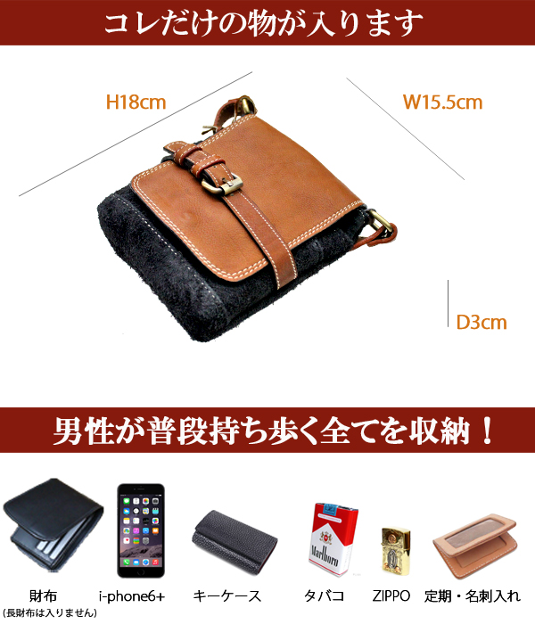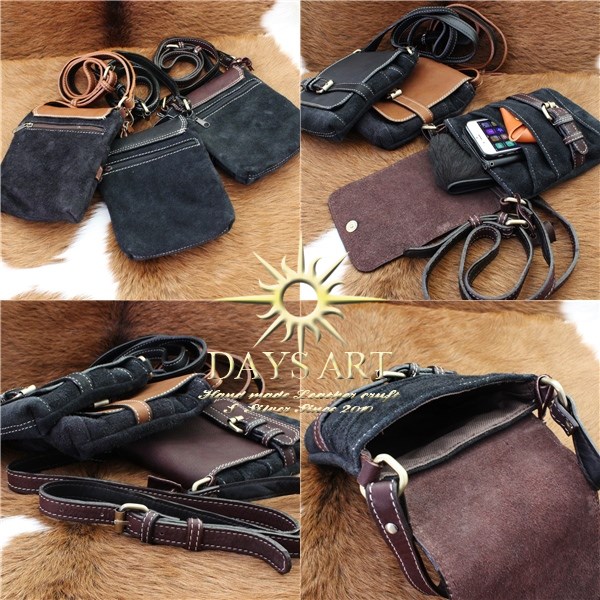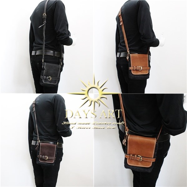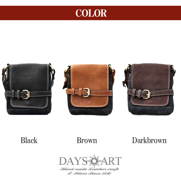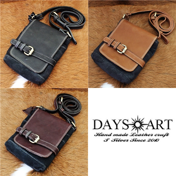 肌触りのいいスエード素材と柔らかいカーフスキンの2タイプの牛革を使用したショルダーバッグです。2つの素材でツートンカラーになっており、ちょっとしたものを持ち運ぶのに便利なショルダータイプのバッグとなっています。カジュアルで男女問わず合わせやすい肩掛けバッグです。