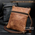 アンティーク調のムラ染めが施された温かみのある風合いがオシャレなレザーポーチです。ブラックカラーは落ち着いたシンプルな色合いになっています。ちょっとしたものを持ち運ぶのに便利なショルダータイプのバッグとなっています。カジュアルで男女問わず合わせやすい肩掛けポーチです。