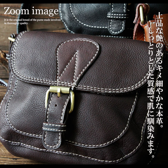 キメが細かくとても柔らかくて肌触りのいいカーフスキン(子牛の革)を使用し、革職人がハンドメイドで製作しています。ちょっとしたものを持ち運ぶのに便利なショルダータイプのバッグとなっています。カジュアルで男女問わず合わせやすい肩掛けポーチです。