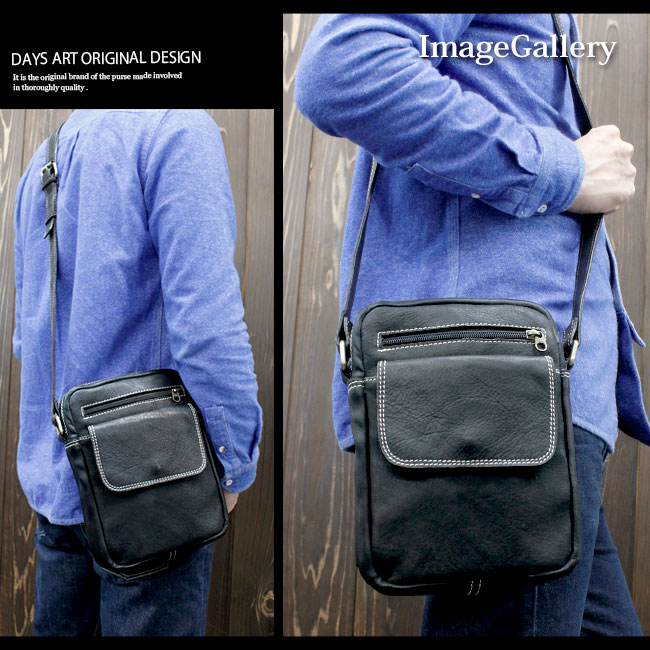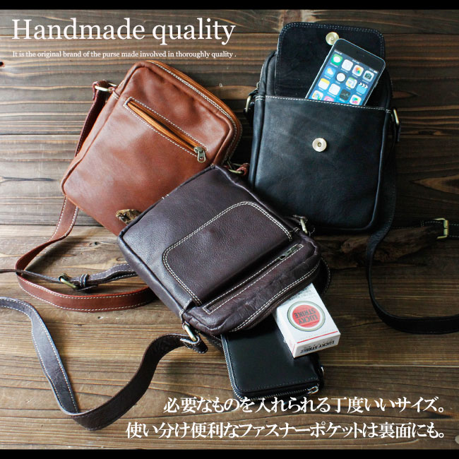 キメが細かくとても柔らかくて肌触りのいいカーフスキン(子牛の革)を使用し、革職人がハンドメイドで製作しています。ちょっとしたものを持ち運ぶのに便利なショルダータイプのバッグとなっています。カジュアルで男女問わず合わせやすい肩掛けポーチです。長財布はもちろん7インチサイズのタブレットも収納でき、ちょっとした外出に便利です。