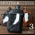 柔らかくキメの細かい上質なカーフスキンを使用してハンドメイドで製作したレザーベルトポーチです。前面に本物の牛毛皮を使用しており、天然ならではの1つと同じ物がない模様がアクセントになっています。メインポケットは長財布が収まるサイズになっており、2重構造で使い分けができます。ベルトループはボタン式になっているため簡単に付け外しができ、ダブルボタンでしっかりとホールドもできます。脚用ベルトが付いているので、バイクや自転車に乗る際は落下防止に役立ちます。ストッパーがあるのでバイカーにもオススメです。