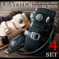 財布、ホルダー、ウォレットチェーン、ベルトループの4点セットとなります。