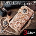 上質のサドルレザーを使用し、熟練の革職人が手彫りで仕上げました。植物タンニンでなめされたサドルレザーは使い込むほどに革独特の飴色の風合いが出てきます。美しいフラワーカービングが全面に施されています。中はポケットも多く、札入れにマチがあるのでとても使い勝手がいい仕様になっています。